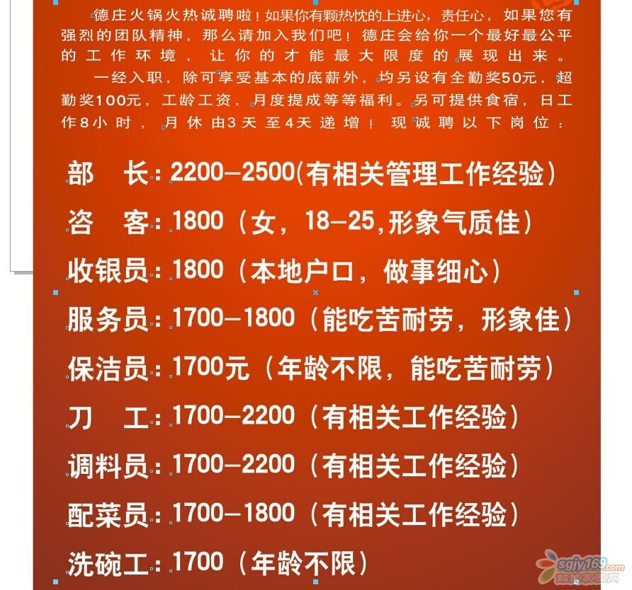正文摘要:本帖最后由 天笑 于 2014-9-9 19:10 編輯 重莊德莊火鍋百年東街韶關店位于湞江區(qū)百年東街C區(qū)三樓1-3-08,為迎接冬季,亦是火鍋旺季。我公司現對外招聘各路人才,凡對餐飲行業(yè)充滿熱情 ... |